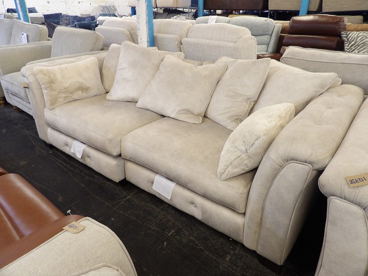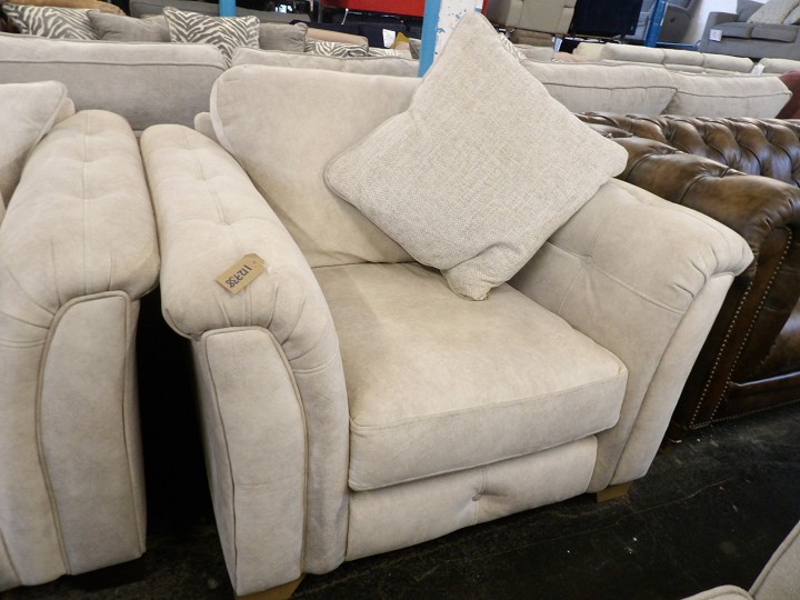 A generous chunky 4 seater sofa paired with a matching cuddle chair, finished in a soft cream fabric. Designed for maximum comfort with deep seats, plush cushioning and wide arms, this suite is perfect for relaxing and stretching out in style.